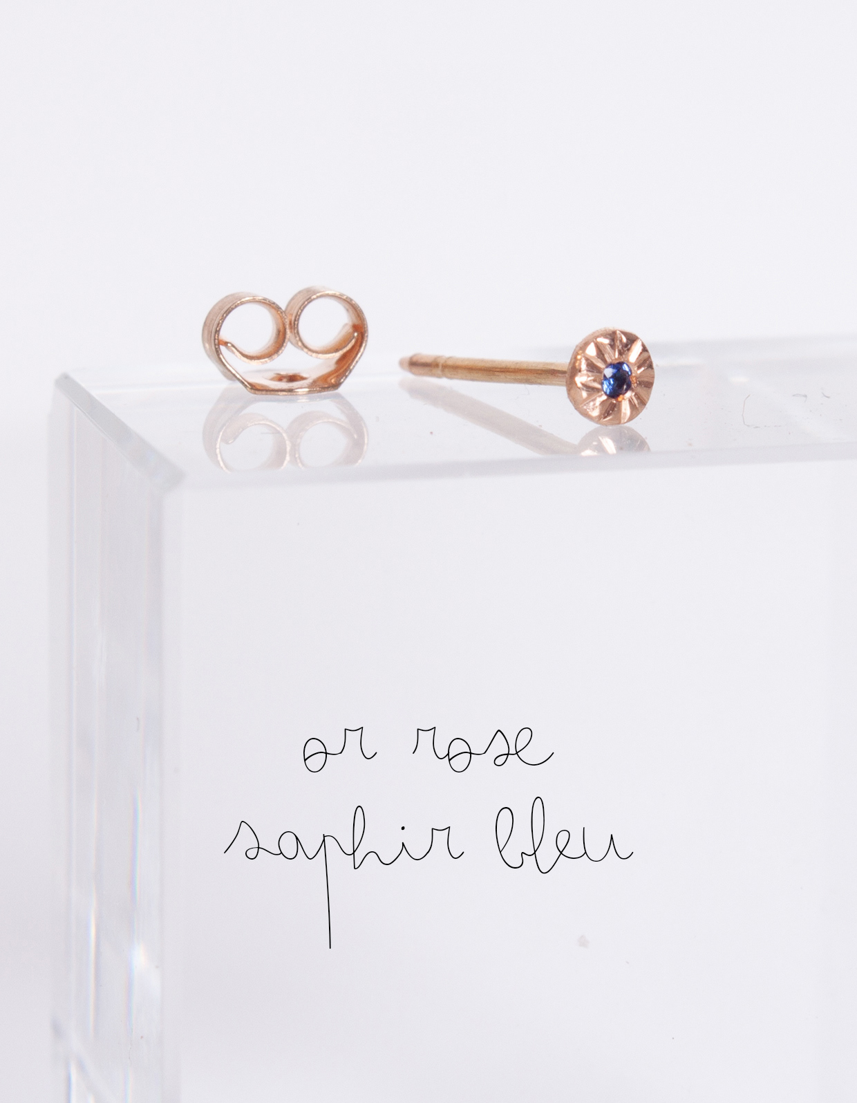 Boucle d'oreille unique or rose et saphir bleu - 175€