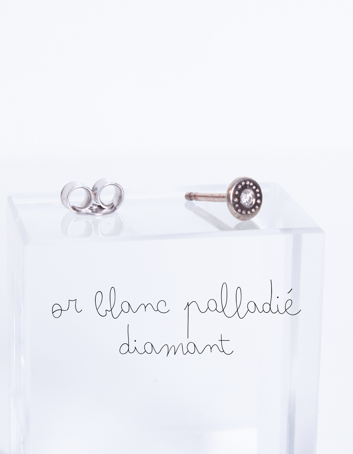 Boucle d'oreille unique en or blanc et diamant - 220€
